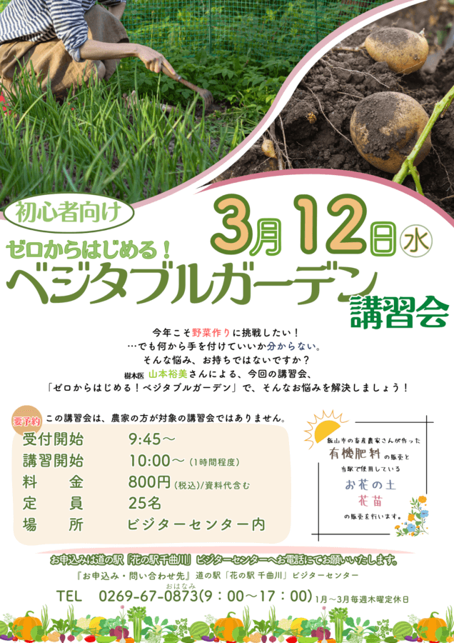 【ビジターセンター】3/12(水)初心者向け ベジタブルガーデン講習会開催&参加者募集のお知らせ