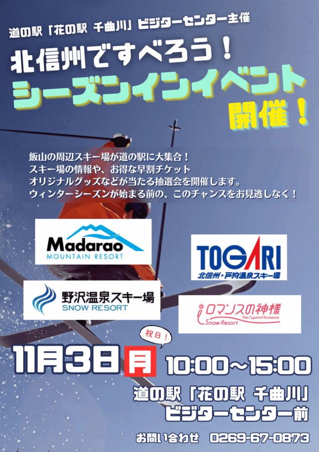 ビジターセンターでは、飯山市を中心とする北信州4つのスキー場をお招きしたシーズンインイベントを開催します!