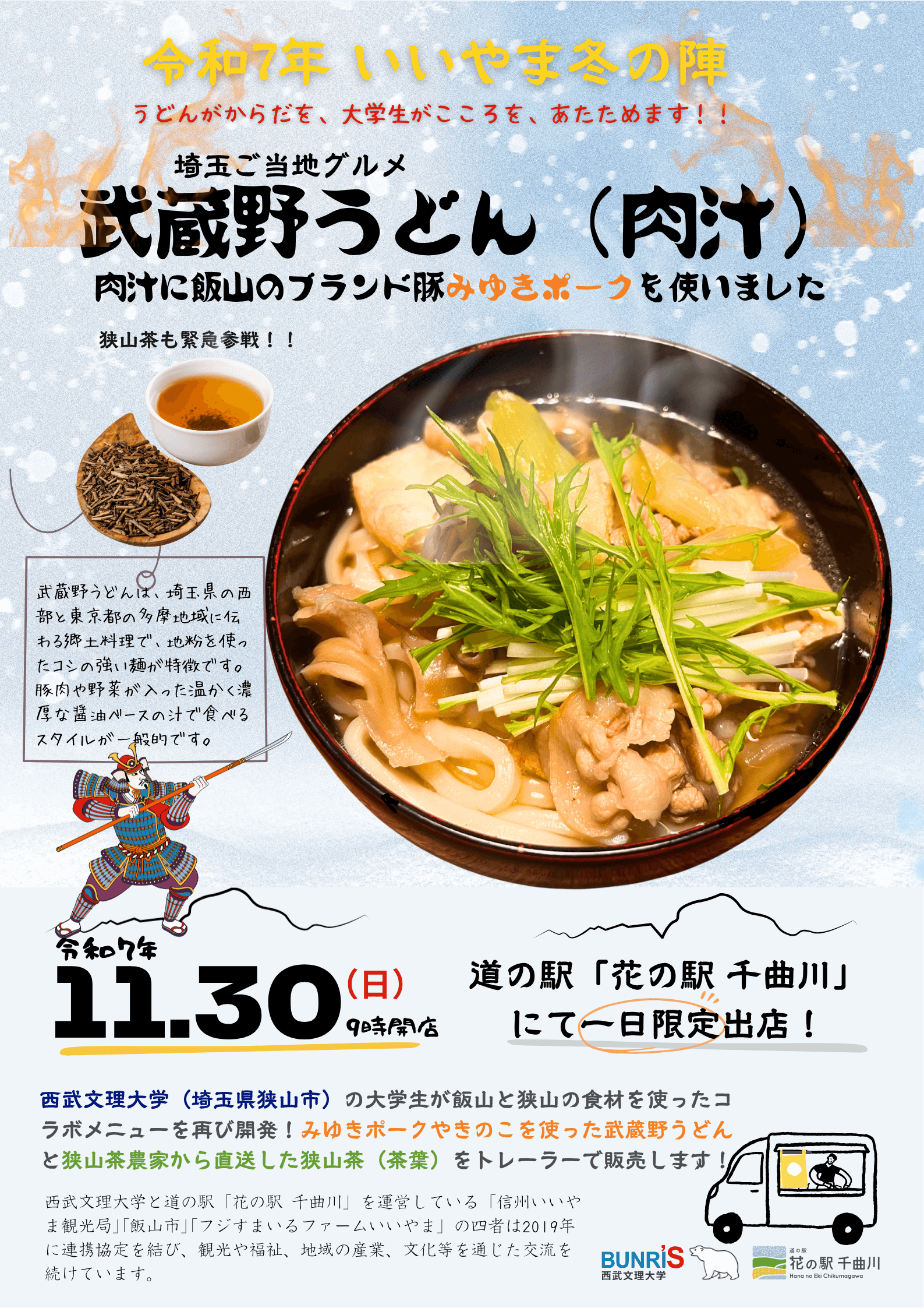 【11/30】西武文理大学による「武蔵野うどん(肉汁)」、「狭山茶」の試飲・販売会開催のお知らせ
