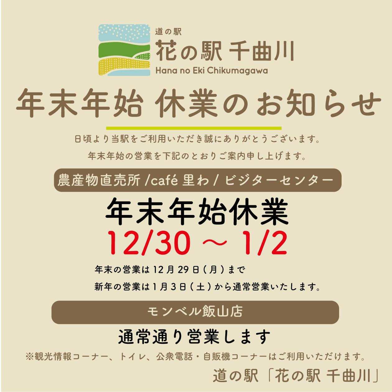 2025-2026 年末年始の営業についてのご案内